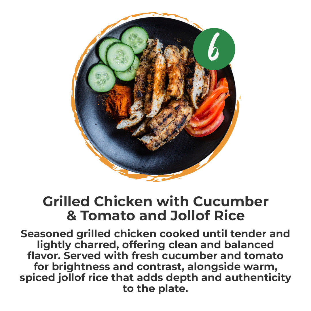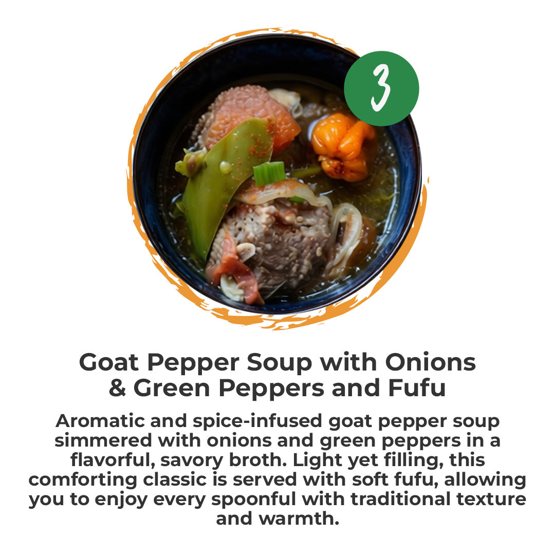 💰 Your Choice of Jollof or Fufu — Every meal includes your choice of Jollof Rice or our signature Fufu at no extra cost. It gives you the flexibility to enjoy your meal the way you like it, while experiencing two of the most loved staples in West African cuisine.