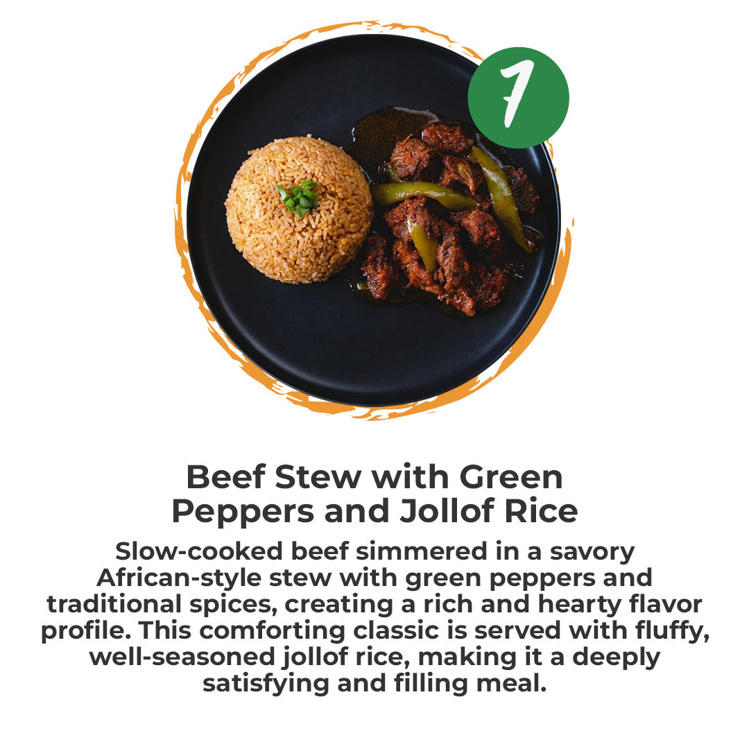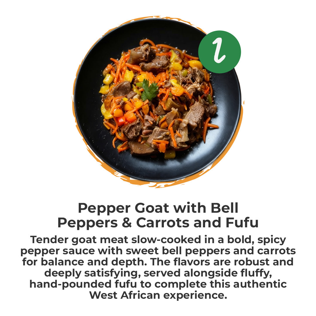 💰 Your Choice of Jollof or Fufu — Every meal includes your choice of Jollof Rice or our signature Fufu at no extra cost. It gives you the flexibility to enjoy your meal the way you like it, while experiencing two of the most loved staples in West African cuisine.